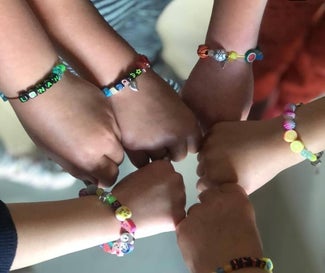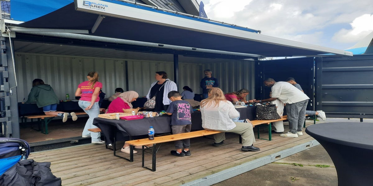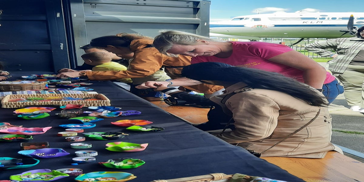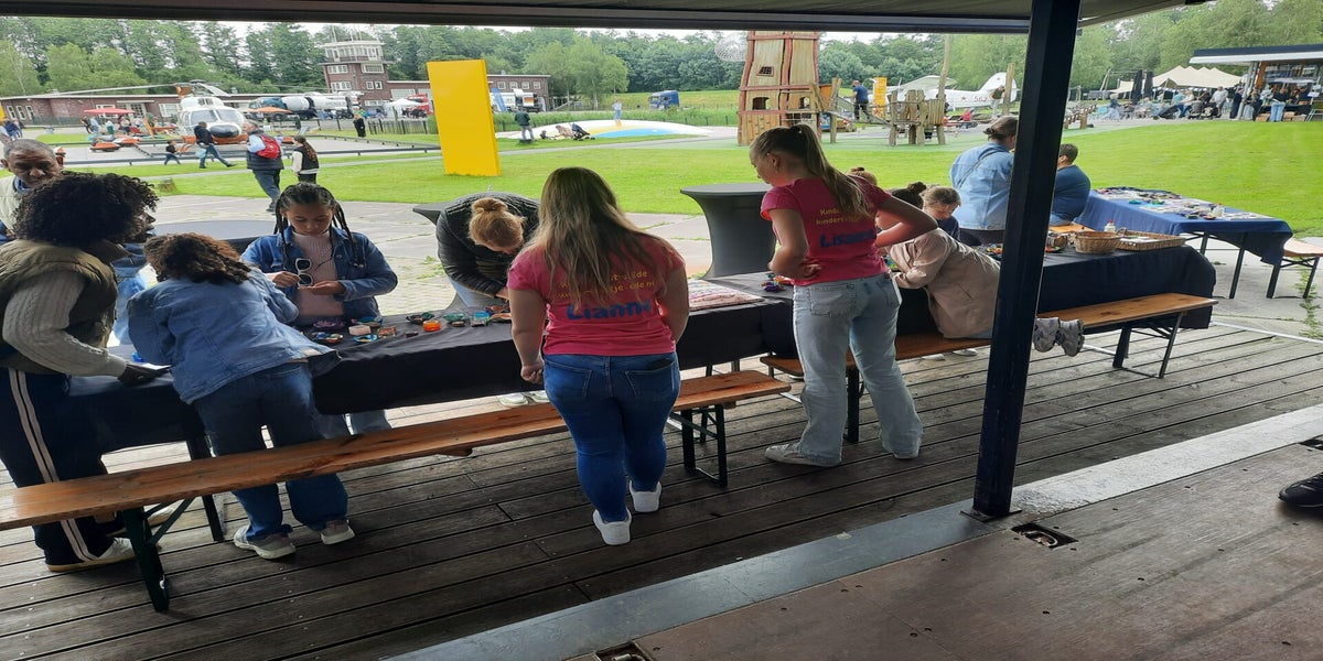 Sleutelhangers en armbandjes maken voor zo'n 250 kinderen tijdens Sleutelhangers maken voor kinderen tijdens een informatiemiddag over een familiedag van Kuhne en Nagel in Aviodrome. duurzaamheid voor inwoners van een wijk