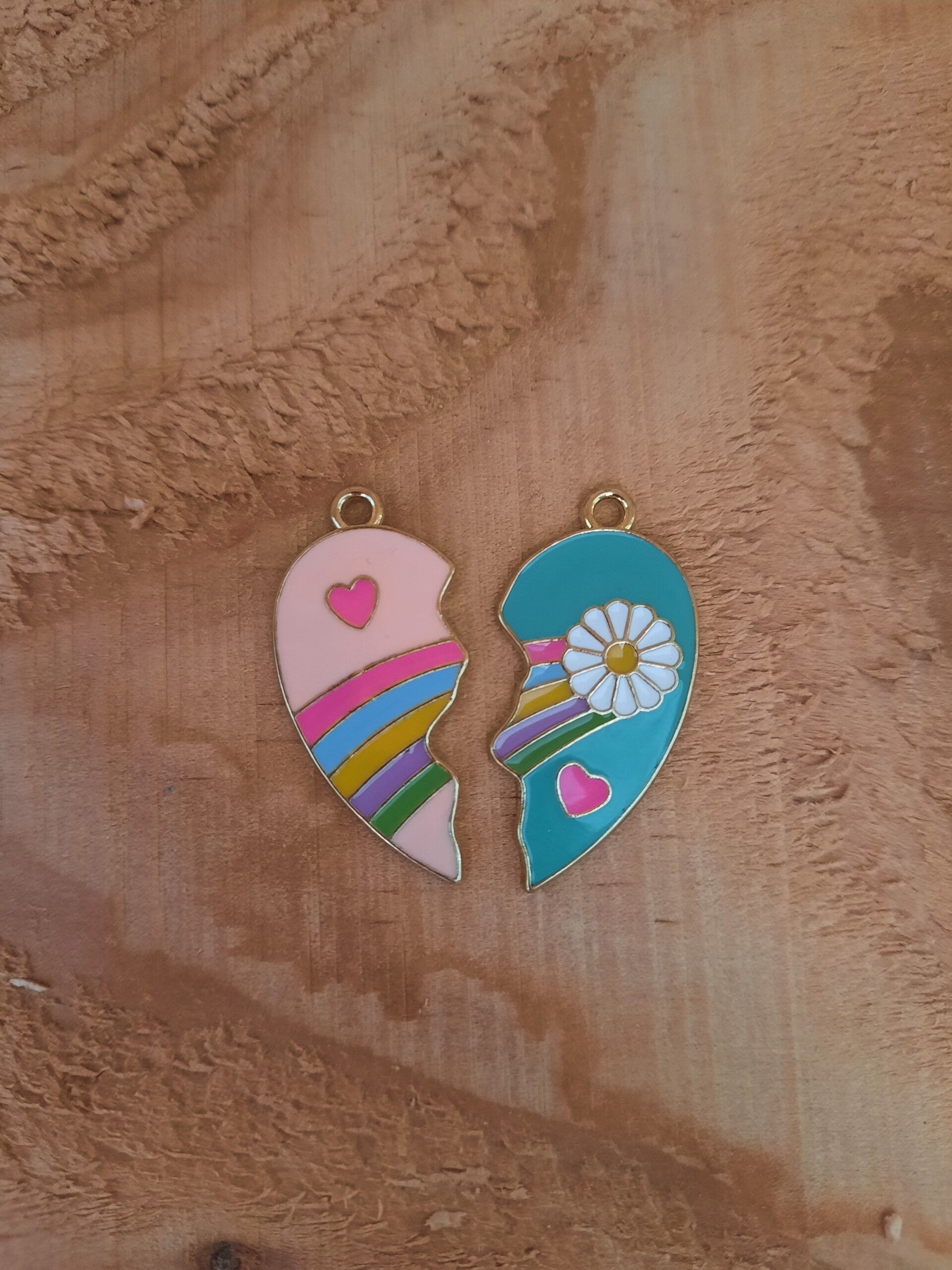 RVS emaille set BFF hart hangers. Met wie ga jij deze delen?