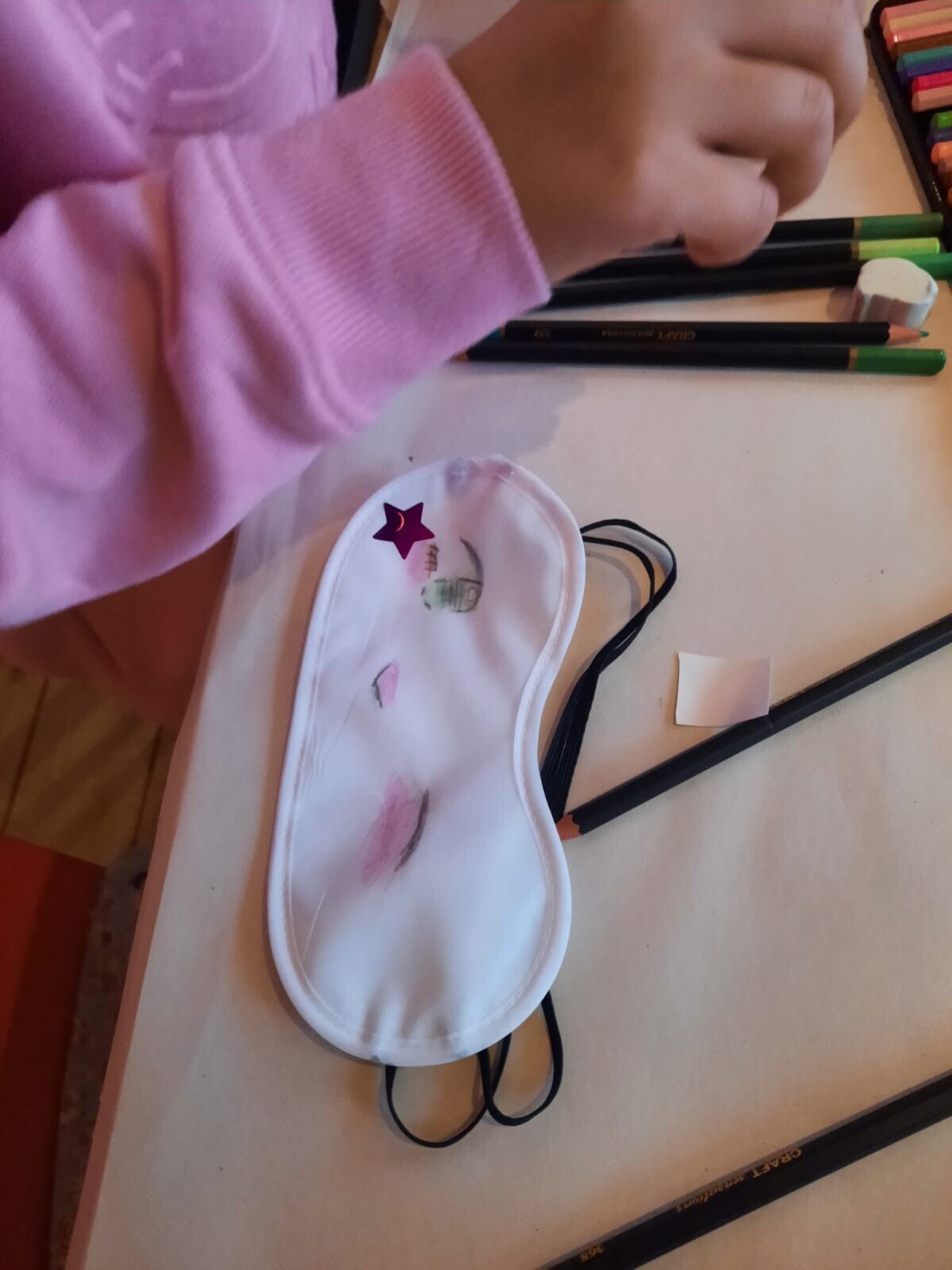 Versier en kleur je eigen slaapmasker! Je kan ze naar eigen inzicht versieren/kleuren maar je kan ook gebruik maken van diverse sjablonenen van Kinderfeestje Ede.